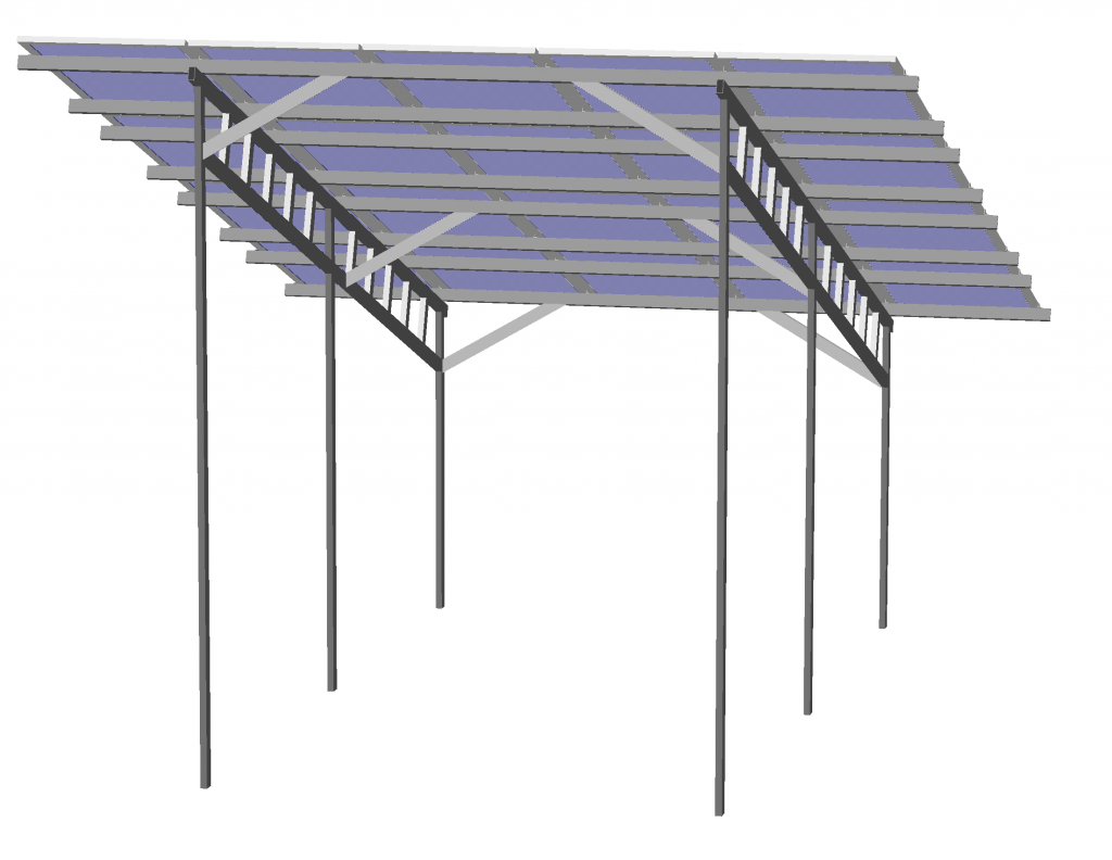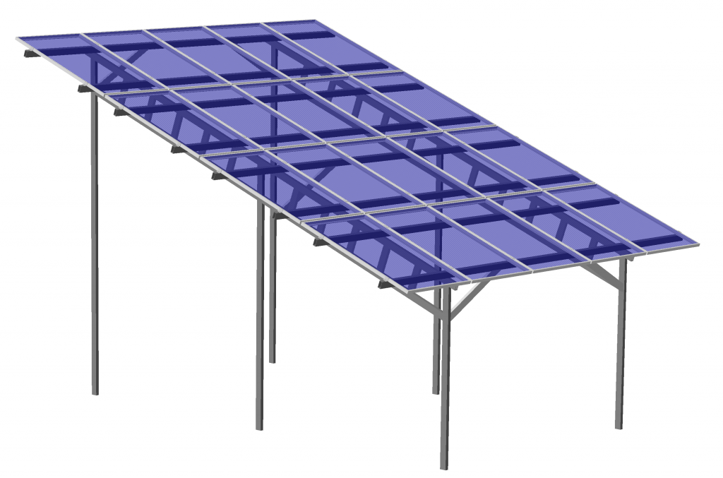Зварна наземна система кріплення сонячних батарей, виконана у вигляді індивідуально спроектованого під ваші потреби сонячного навісу. Найпрактичніша система кріплень сонячних панелей. Можливе створення як тіньових навісів, так і не промокає за допомогою системи Solrif .
