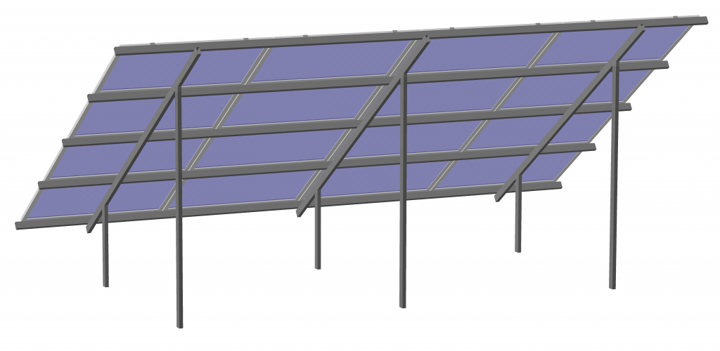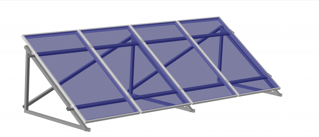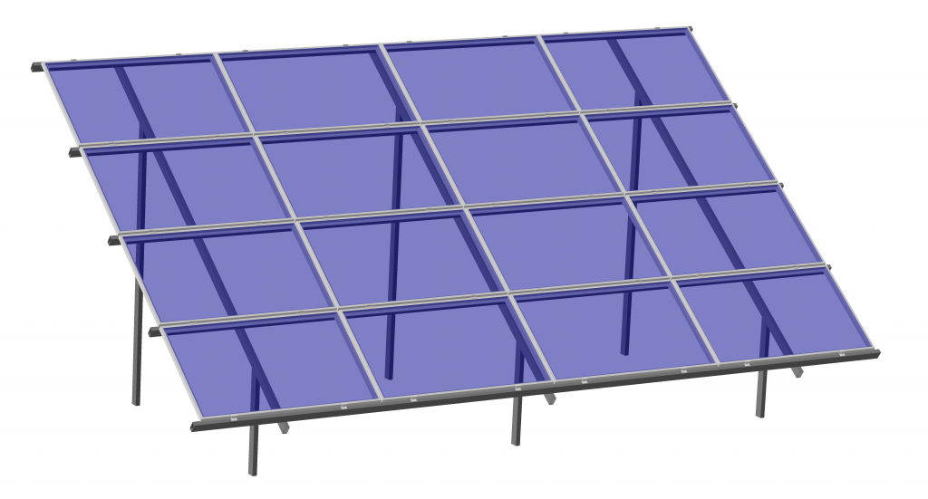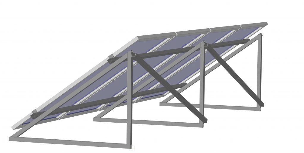 Чотирирядна, шестиопорна, горизонтальне розташування фотомодулів. Кількість сонячних батарей – 16 шт. Кут встановлення сонячного поля – 35 градусів.