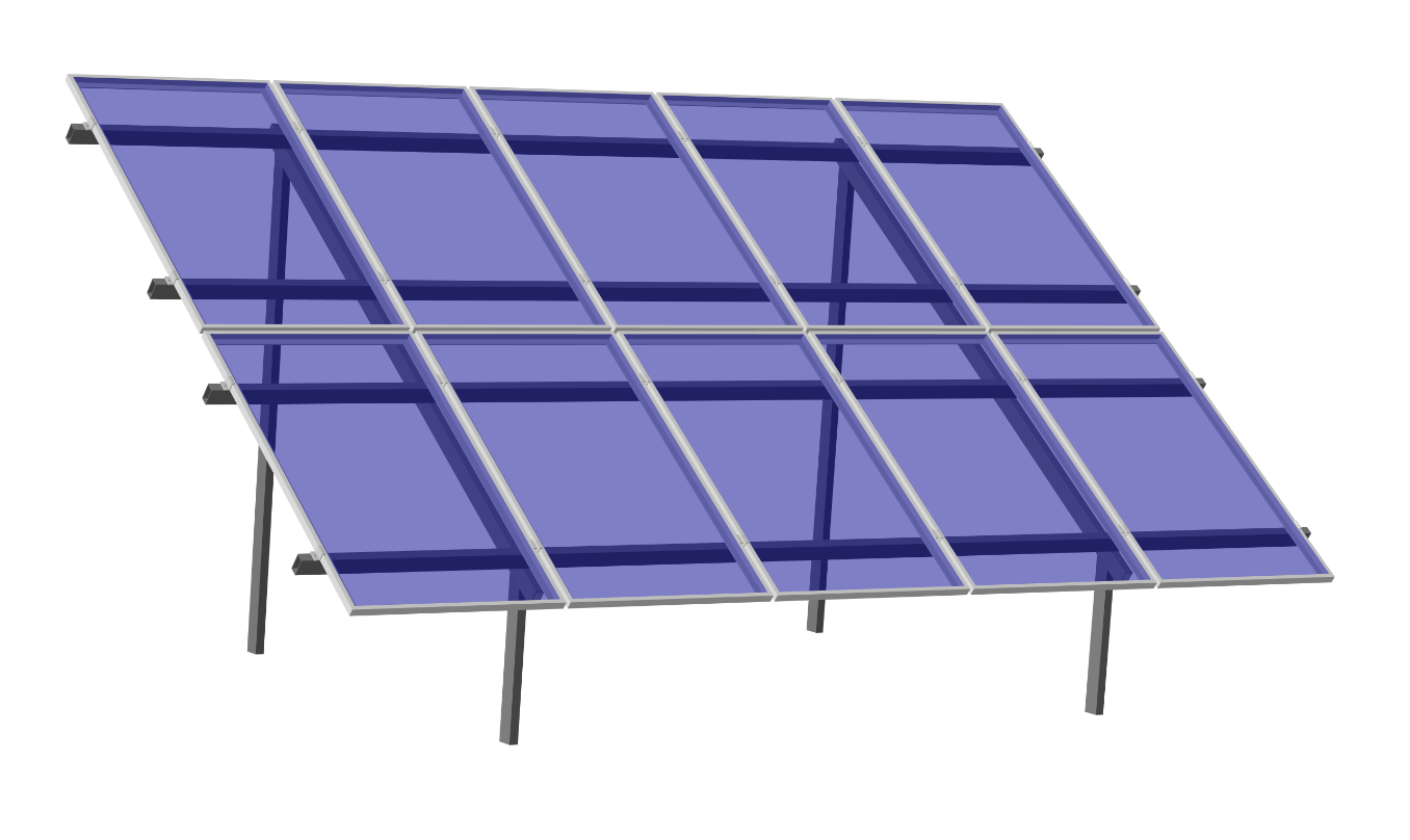 залежно від місця встановлення сонячних панелей та кількості столів в 1м ряду передбачено додаткове посилення конструкції монтажних кріплень бічними та задніми розкосами.