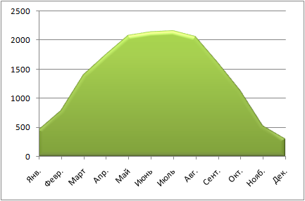 Графік продуктивності сонячної станції 15 кВт, кВт * год