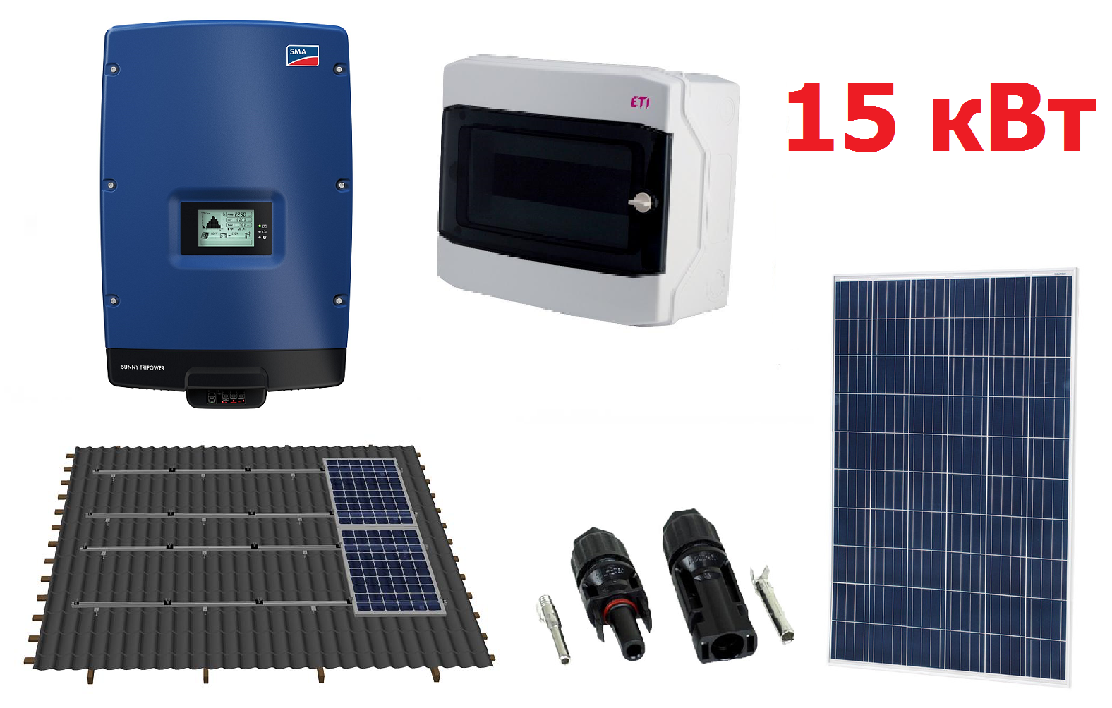 Основні технічні характеристики комплекту обладнання сонячної електростанції «Premium» на 15 кВт :