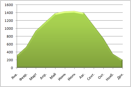 Графік продуктивності сонячної станції 10 кВт, кВт * год