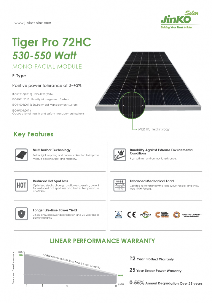 - Гарантія 10 років на виріб. Лінійна гарантія на характеристики потужності – 25 років.