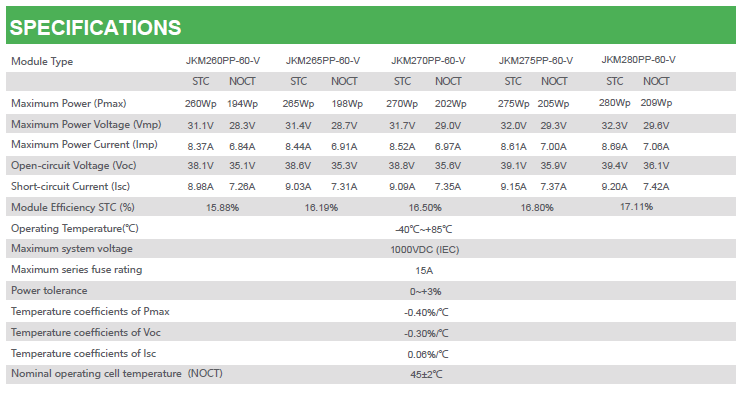Моделі: JKM275PP-60 5bb, JKM280PP-60 5bb