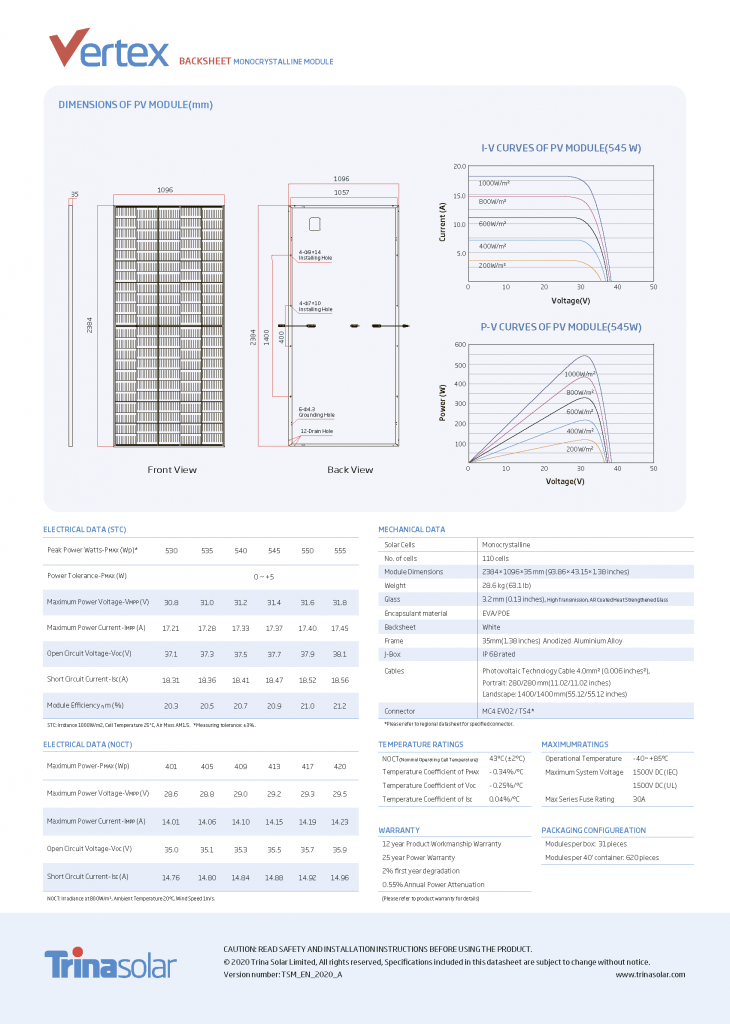 У 2025 році ми представляємо фотомодулі від 400 Ватт до 545 потужністю