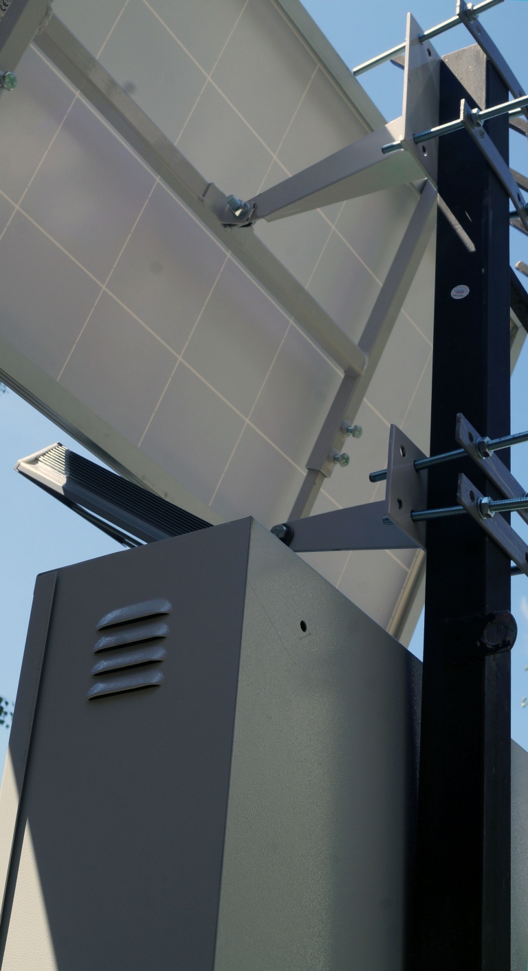 Батарея та контролер зберігаються в міцному антивандальному боксі, виготовленому зі сталі товщиною 2мм та забезпеченим сувальдним замком. Бокс також має незалежне кріплення на опору, так що його можна встановити на будь-якій висоті або всередині будівлі.