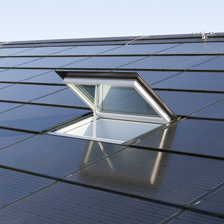 - Вищий коефіцієнт використання поверхні покрівлі для генерації електроенергії через вузькі профілі рами.