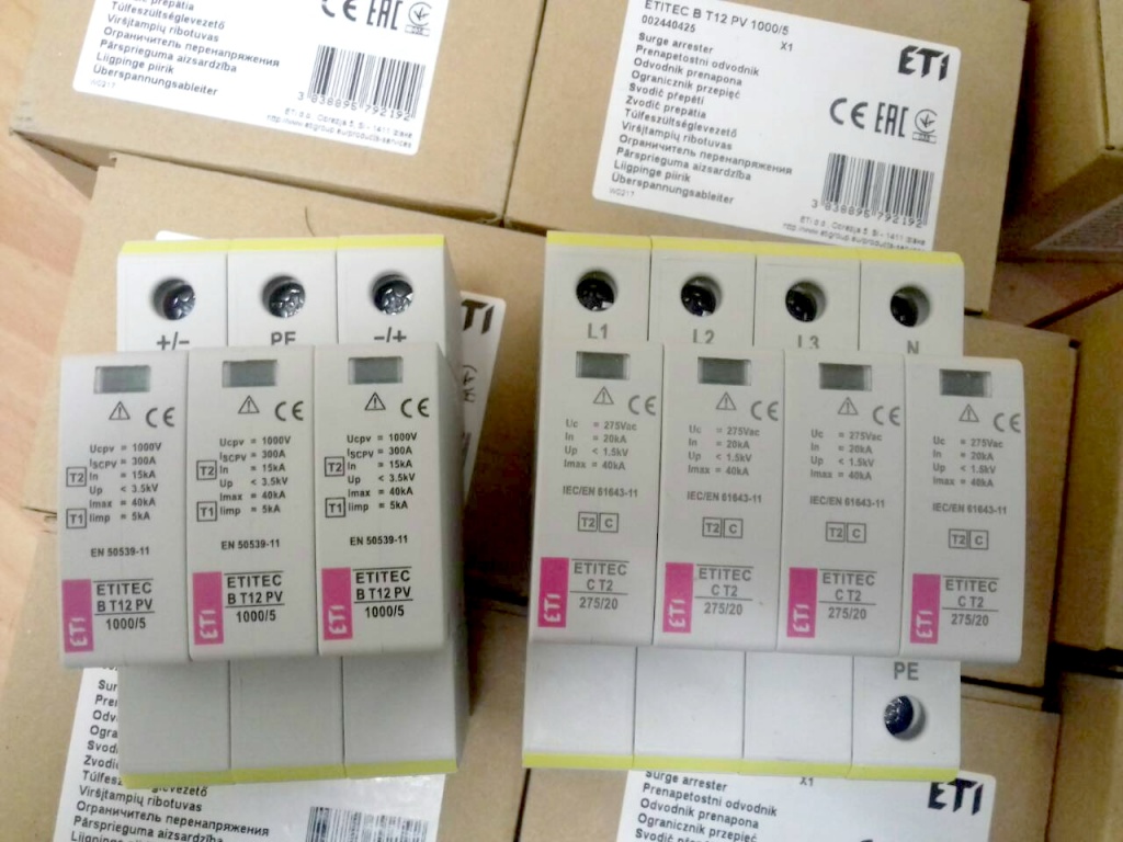 Тому ми проектуємо захист інвертора та захист сонячних батарей на надійному обладнанні ABB Італія та ETI виробництва Словенії. Є кілька варіантів захисту мережевого інвертора – від бюджетних варіантів до повного захисту кожного стрінгу! І відповідно можна надати як дешево мінімальний захист фотомодулів від короткого замикання, так і повний блискавкозахист та захист від перенапруг інвертора та сонячних батарей.